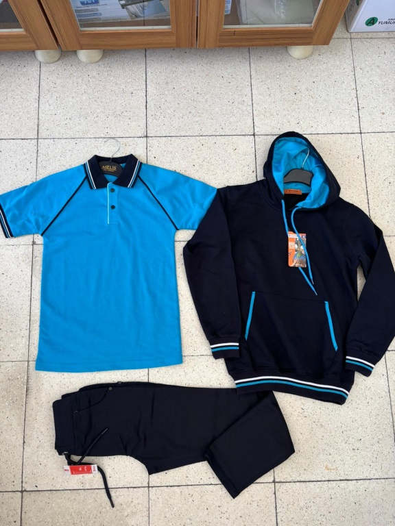 Kışlık olarak kızlarda lila çizgi desenli, erkek öğrencilerde mavi çizgi desenli kapüşonlu sweatshirt olarak belirlenmiştir.